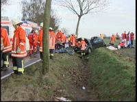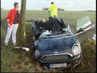 Der 18 Jahre alte Fahranfänger (Führerschein erst seit März 2007) war laut Polizei am Sonntag gegen 12.15 Uhr mit einem geliehenen Mini offenbar viel zu schnell auf der nassen Straße unterwegs. In einer leichten Rechtskurve verlor er die Kontrolle über das Auto, dieses schleuderte gegen einen Baum, dann rund 40/50 Meter weiter gegen einen weiteren und kam schließlich in einem Graben zum Stehen. Der Fahrer erlitt dabei tödliche Kopfverletzungen - für ihn kam jede Hilfe zu spät. Die beiden anderen wurden mit lebensgefährlichen Verletzungen in dem Wrack eingeklemmt. Feuerwehrleute mussten das komplette Dach des Wracks abtrennen, ehe den 18-jährigen Beifahrer und die 17-Jährige auf dem Rücksitz befreien konnten. Beide wurden dann mit Rettungshubschraubern in Krankenhäuser geflogen.